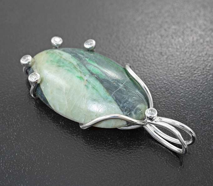 Кулон с крупным мау-сит-ситом 38 карата и бесцветными цирконами