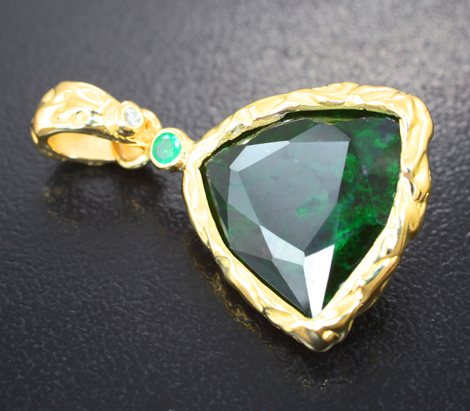 Кулон с мау-сит-ситом 12,86 карата, уральским изумрудом и бриллиантом