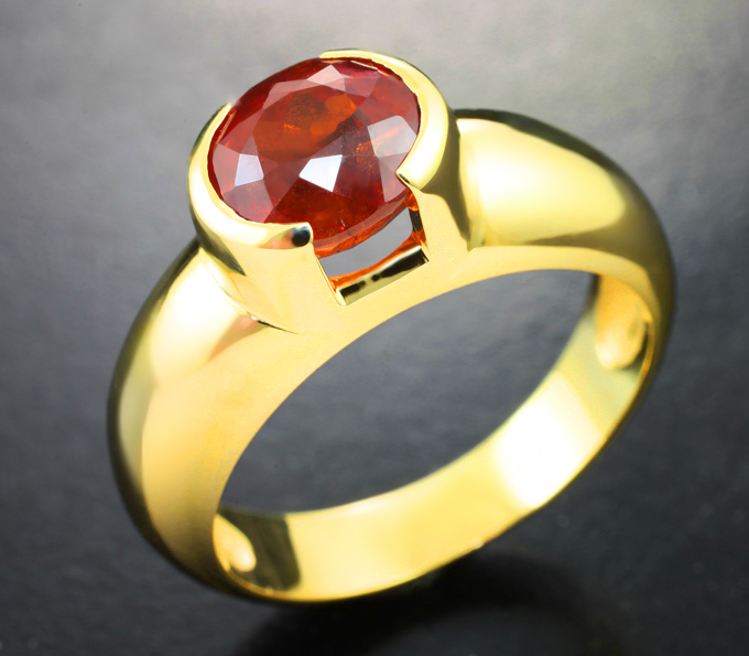 Вашему вниманию предлагается кольцо из желтого золота 585 пробы со спессартином гранатом! Площадка 10 х 8 мм, высота 8 мм. Вес изделия 7,96 г. Размер 18,5. Ниже приводятся ювелирные характеристики вставки.