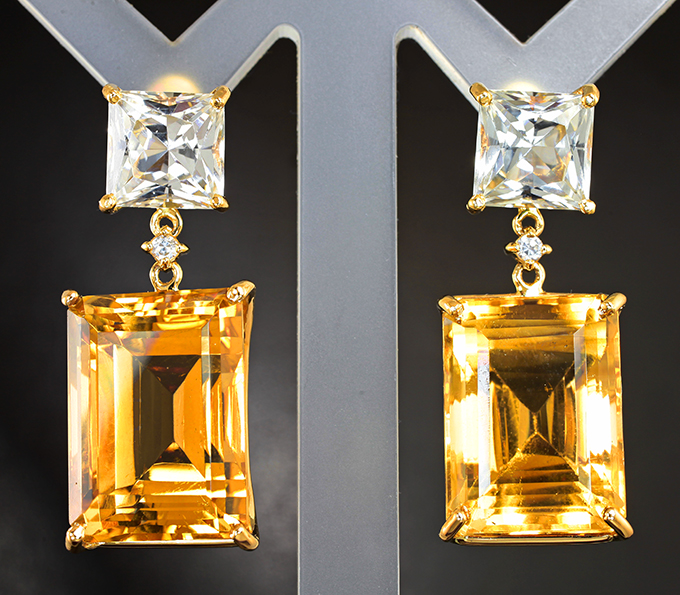 Серьги с цитринами 48,15 карата, бесцветными топазами и цирконами