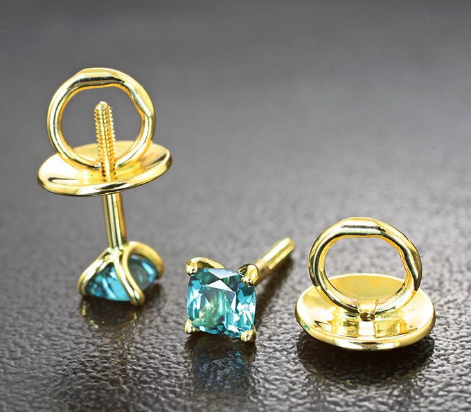 Пусеты с индиголитами турмалинами 0,54 карата