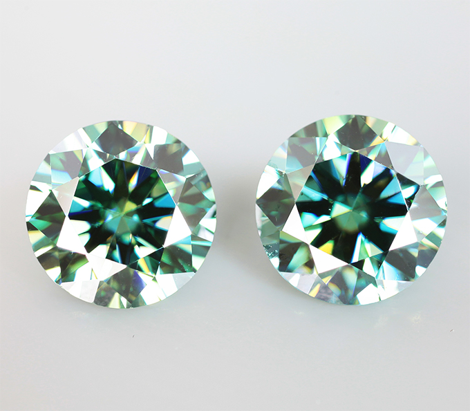 Пусеты с голубовато-зелеными муассанитами 2,81 карата