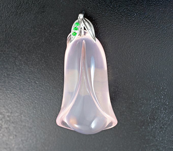 Вашему вниманию предлагается кулон из стерлингового серебра (925 проба) с крупным розовым кварцем и цаворитами! Диаметр дополнительной инкрустации 1,5 мм. Размеры кулона с петлей 52 х 23 мм. Вес изделия 19,46 г. Ниже приводятся ювелирные характеристики вставки.