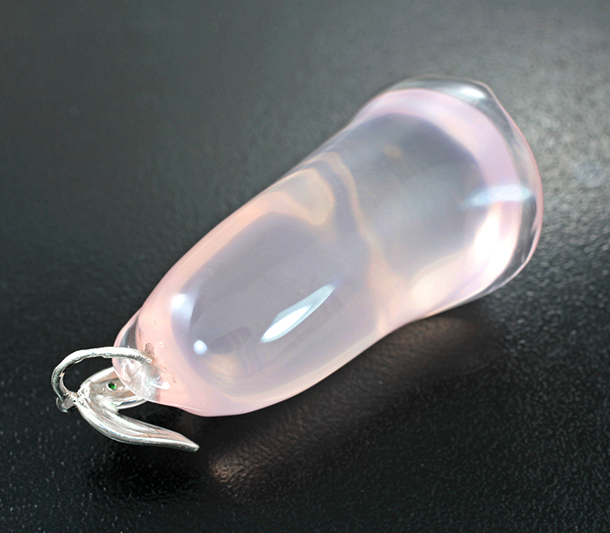 Кулон с крупным розовым кварцем 93,81 карата и цаворитами
