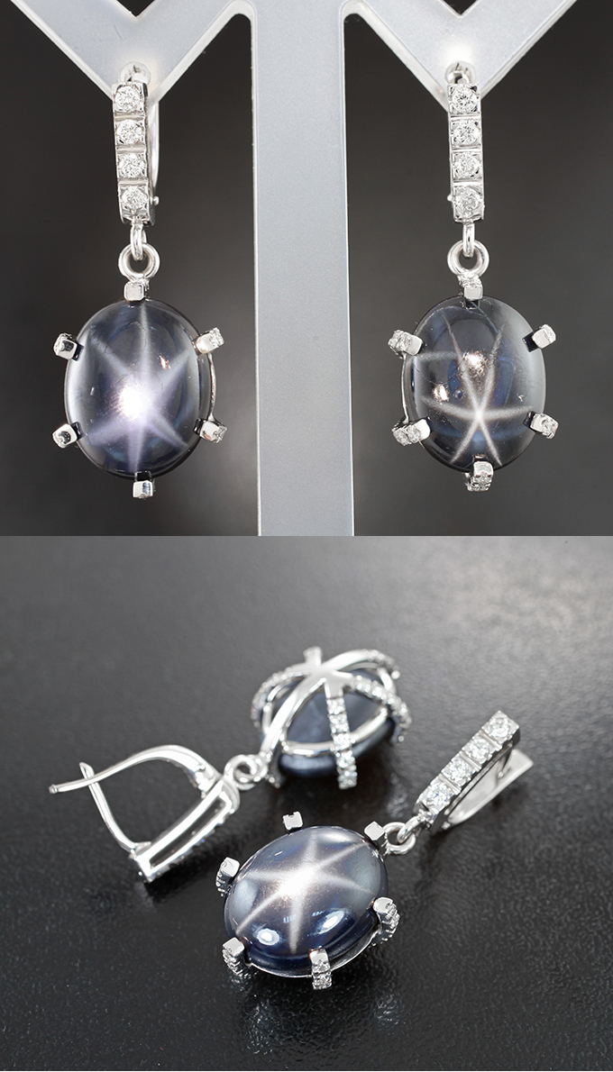Комплект со звездчатыми сапфирами 49,30 карата и бриллиантами