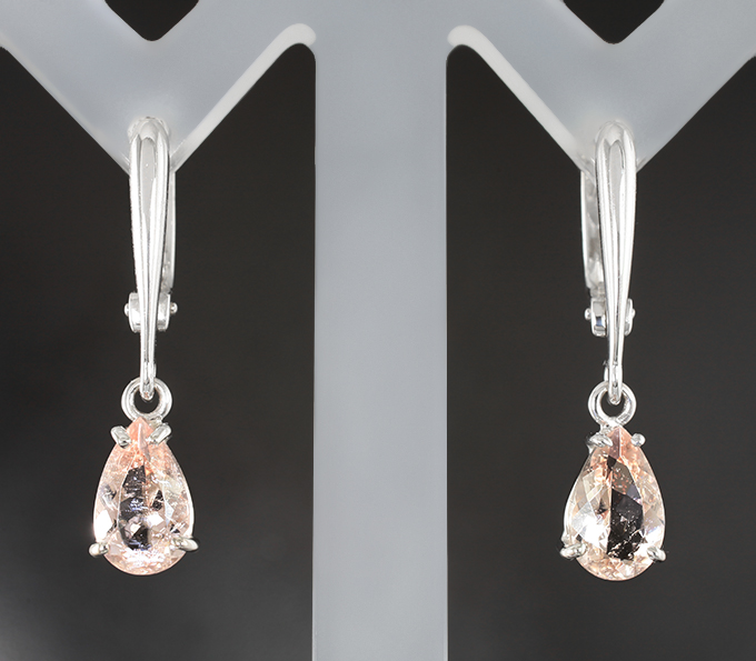 Вашему вниманию предлагаются серьги из белого золота 585 пробы с морганитами! Размеры серег с петлей 27 х 7 мм. Вес пары 3,07 г. Ниже приводятся ювелирные характеристики вставок.