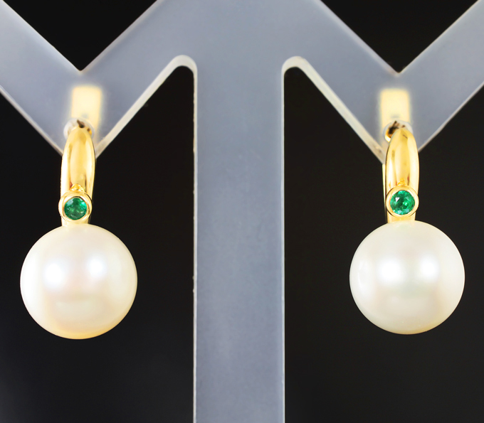 Серьги с морским жемчугом 10,08 карата и изумрудами