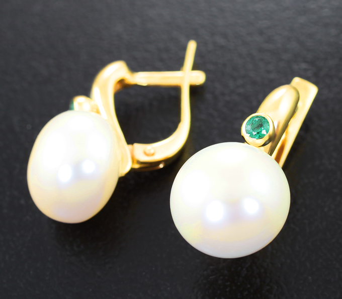 Вашему вниманию предлагаются серьги из желтого золота 585 пробы с морским жемчугом и изумрудами! Диаметр дополнительной инкрустации 2 мм. Размеры серег с петлей 17 х 10 мм. Вес пары 4,03 г. Ниже приводятся ювелирные характеристики жемчуга.