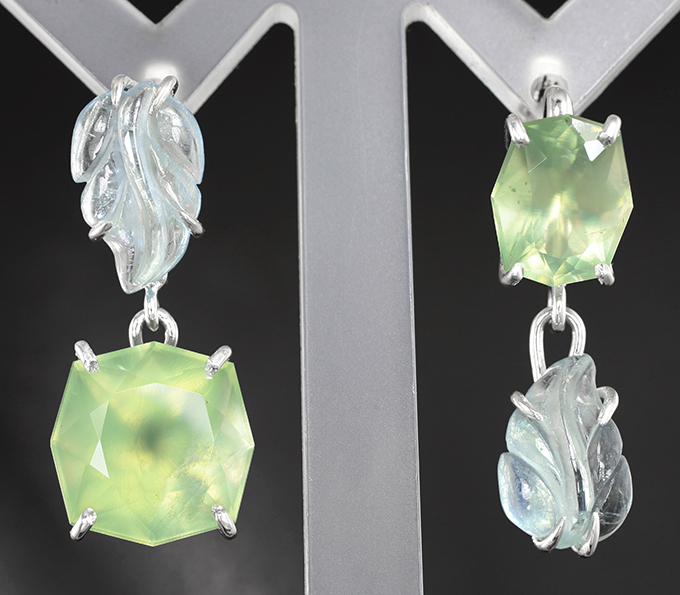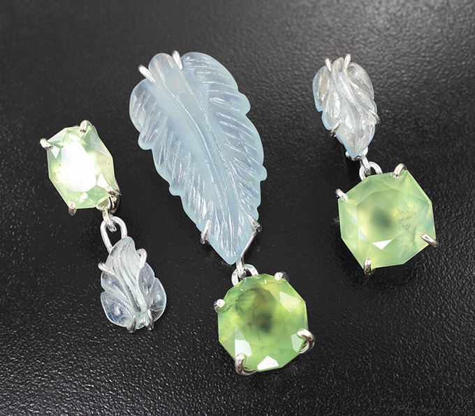 Комплект с пренитом 25,25 карата и резными аквамаринами