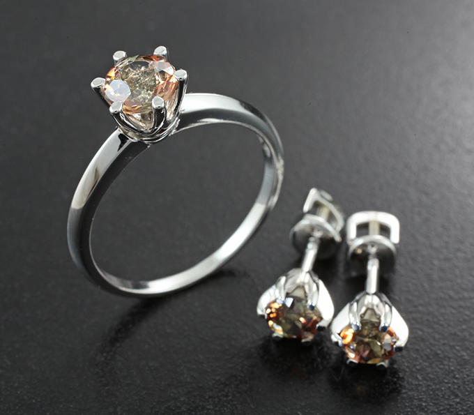 Вашему вниманию предлагается комплект (кольцо + пусеты) из белого золота 585 пробы с андалузитами! Вес комплекта 4,91 г.