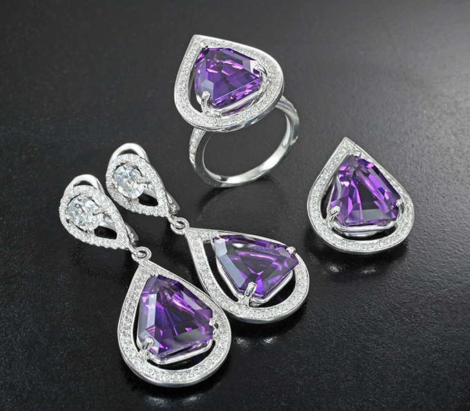 Комплект с аметистами авторской огранки 32,46 карата и бесцветными цирконами