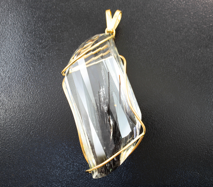 Кулон с кварцем авторской огранки с включением турмалина 155,34 карата