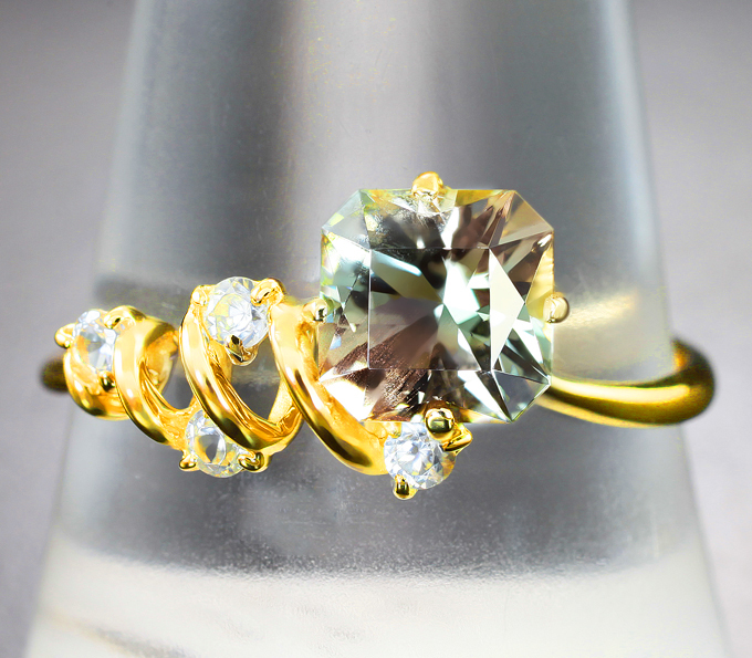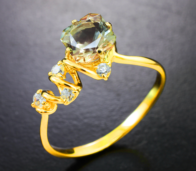 Кольцо с орегонским солнечным камнем 1,27 карата и бесцветными цирконами
