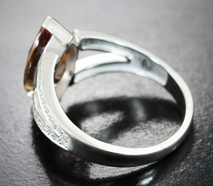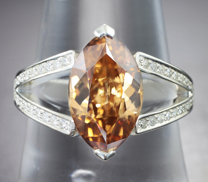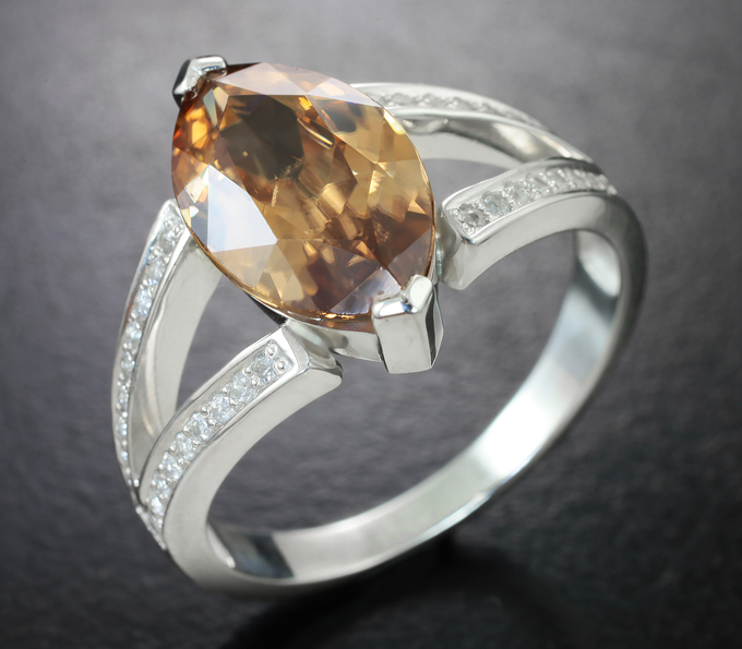 Кольцо с цирконом высокой чистоты авторской огранки и бесцветными цирконами