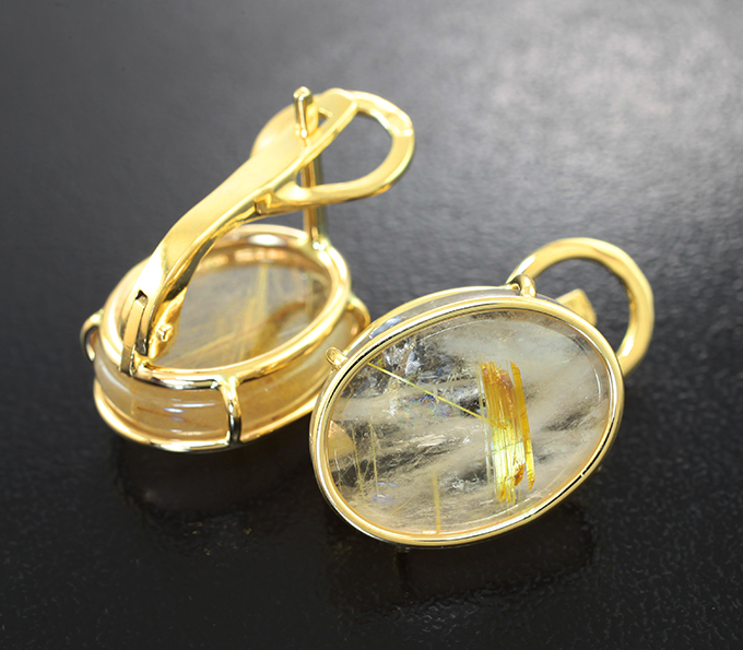 Вашему вниманию предлагаются серьги из желтого золота 585 пробы с рутиловым кварцем! Площадка серег 16 х 12 мм. Вес пары 6,98 г. Ниже приводятся ювелирные характеристики вставок.