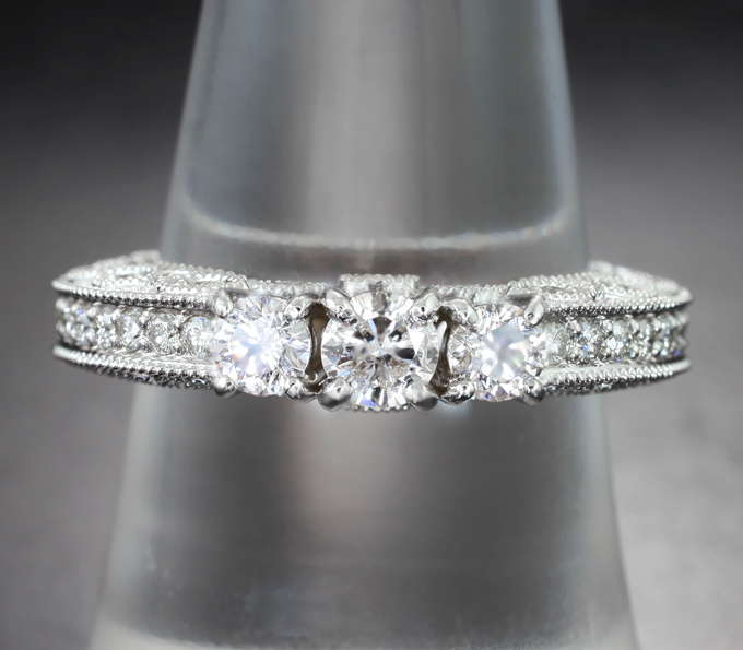 Вашему вниманию предлагается кольцо из белого золота 585 пробы c бриллиантами! Диаметр дополнительной инкрустации 1,3 мм и 1,5 мм. Площадка 11 х 4 мм, высота 7 мм. Вес изделия 6,34 г. Размер 18. Ниже приводятся ювелирные характеристики вставки.