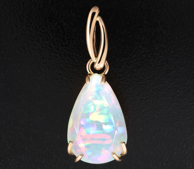 Вашему вниманию предлагается кулон из розового золота 585 пробы с ограненным эфиопским опалом! Основные цвета опалесценции: красный, желтый, зеленый, синий и фиолетовый. Размеры кулона с петлей 29 х 11 мм. Вес изделия 2,24 г. Ниже приводятся ювелирные характеристики вставки.
