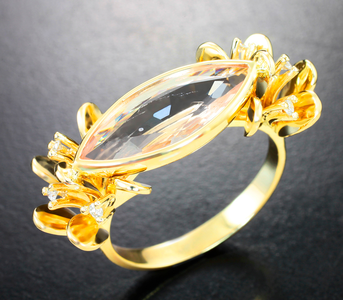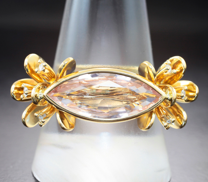 Кольцо с морганитом 3,08 карата и бриллиантами