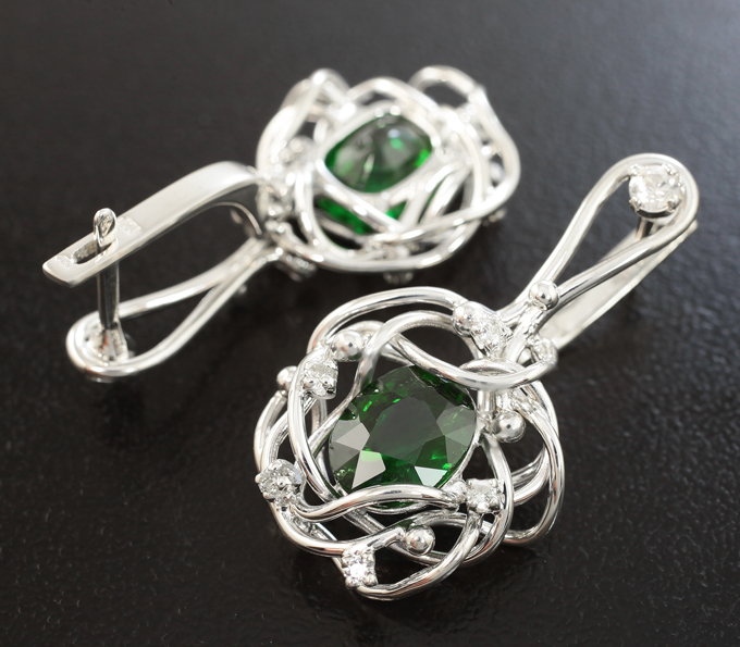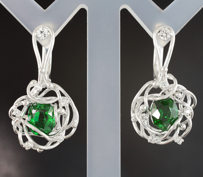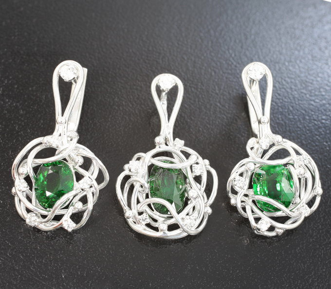 Комплект с крупными насыщенными цаворитами 6,36 карата и бесцветными цирконами