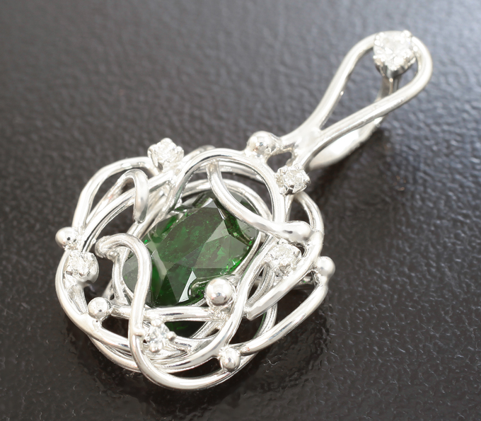 Вашему вниманию предлагается комплект (серьги + кулон) из стерлингового серебра (925 проба) с крупными насыщенными цаворитами гранатами и бесцветными цирконами! Диаметр дополнительной инкрустации 1,5 мм и 2,5 мм. Вес комплекта 8,86 г.