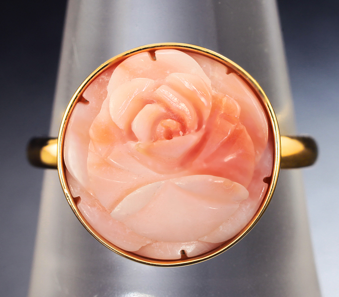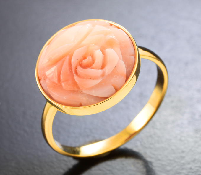 Золотое кольцо с резным solid кораллом 4,6 карата