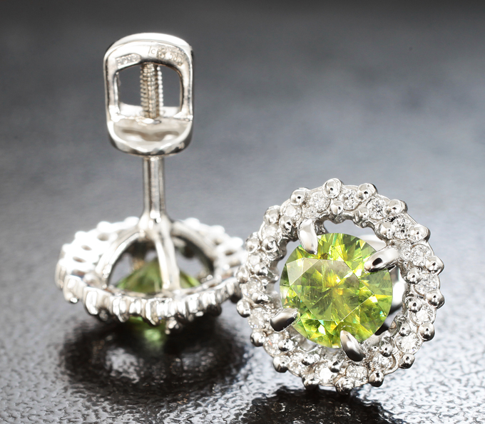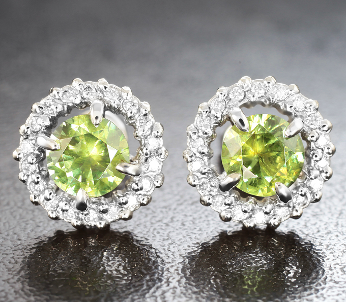 Комплект с демантоидами гранатами 2,74 карата и бриллиантами