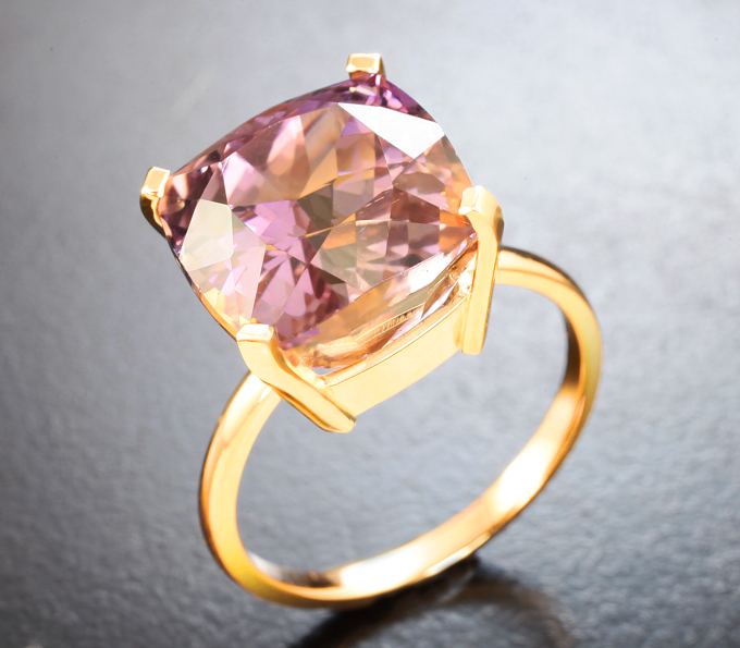 Вашему вниманию предлагается кольцо из желтого золота 585 пробы c чистейшим аметрином! Площадка 13 х 13 мм, высота 10 мм. Вес изделия 5,74 г. Размер 18,5. Ниже приводятся ювелирные характеристики вставки.