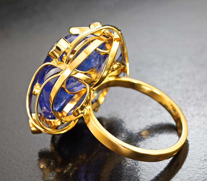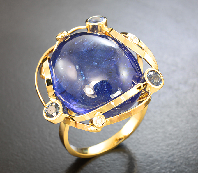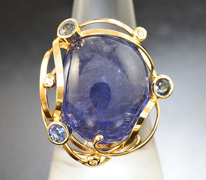 Кольцо с танзанитом 28,6 карата, синими сапфирами и бриллиантами