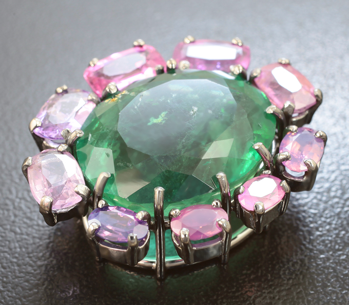 Кулон с с флюоритом 29,02 карата, пурпруными и розовыми сапфирами