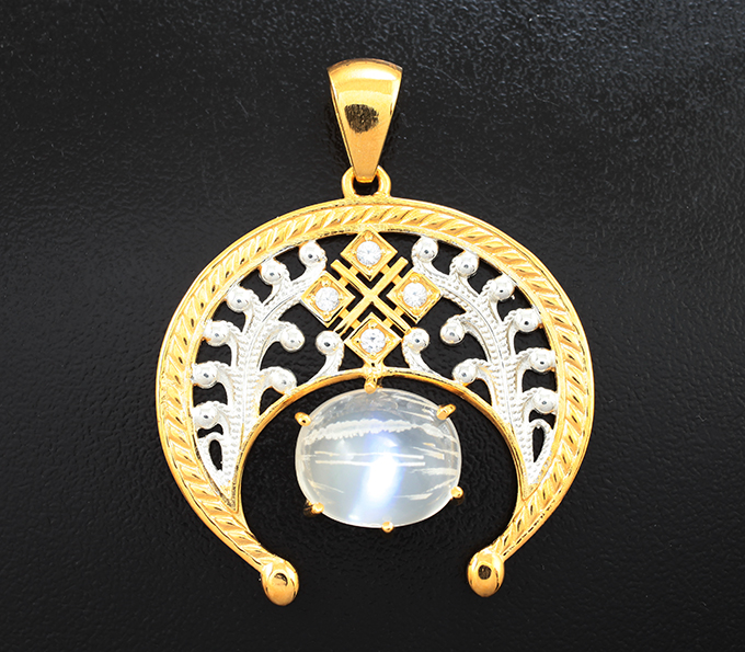 Кулон с лунным камнем с включением рутила 10,1 карата и бесцветными цирконами