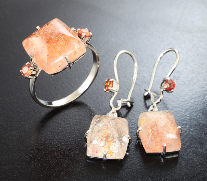 Комплект с орегонским солнечным камнем 20,15 карата и оранжевыми сапфирами