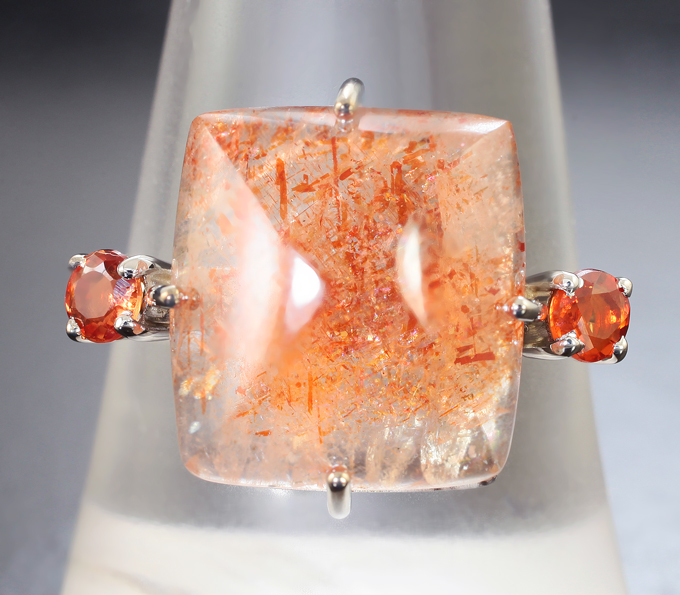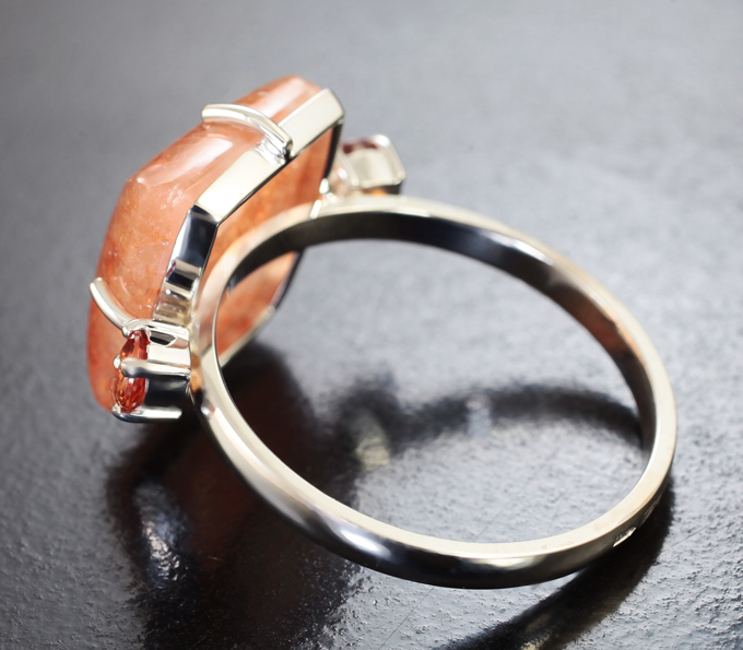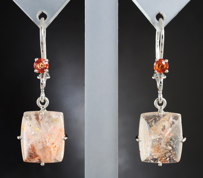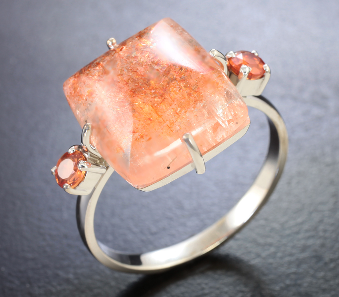Вашему вниманию предлагается комплект (кольцо + серьги) из белого золота 585 пробы с орегонским солнечным камнем и оранжевыми сапфирами! Диаметр дополнительной инкрустации 3,5 мм. Вес комплекта 9,19 г.