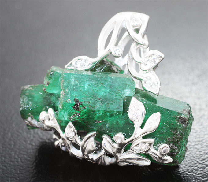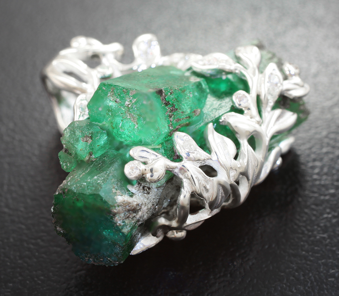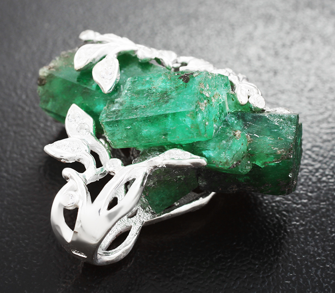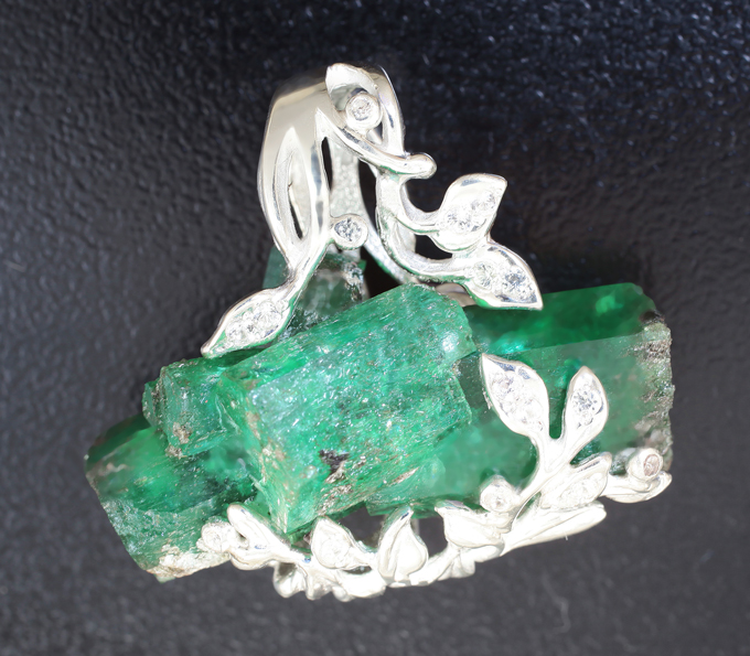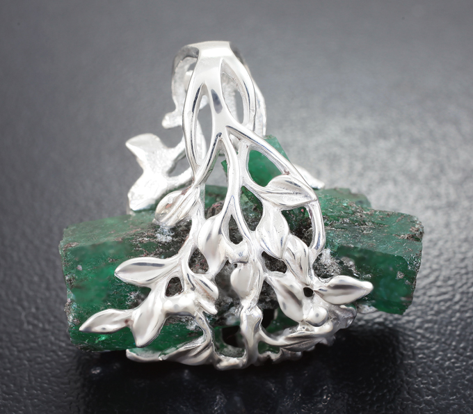 Кулон с кристаллами уральского изумруда 31,25 карата и бесцветными цирконами