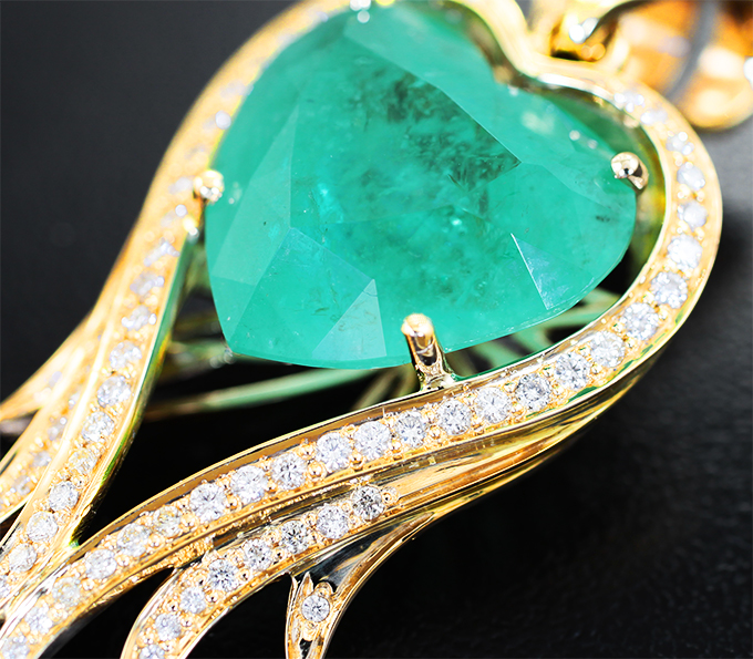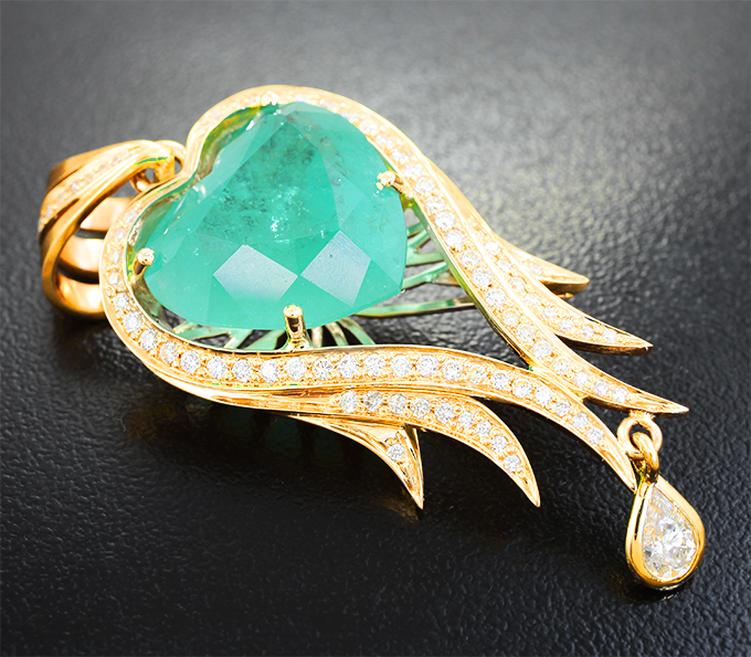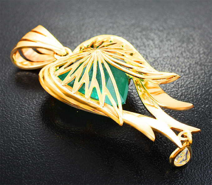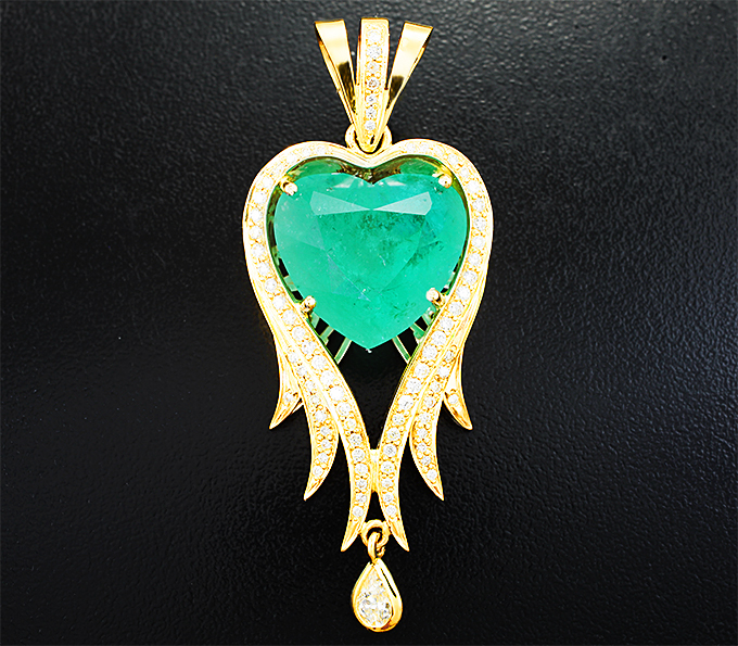 Кулон с уральским изумрудом 17,27 карата, бриллиантами и муассанитом