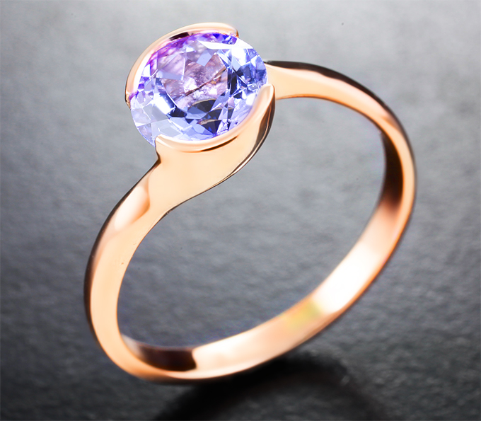 Вашему вниманию предлагается кольцо из розового золота 585 пробы с танзанитом 1,32 карата! Диаметр вставки 6 мм. Ширина площадки 7 мм, высота 5 мм. Вес изделия 2,26 г. Размер 16,5.