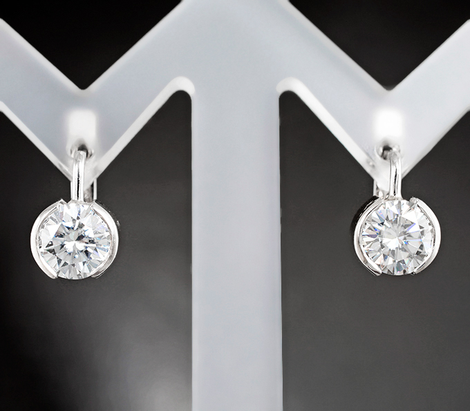 Вашему вниманию предлагаются серьги из белого золота 585 пробы с бесцветными муассанитами! Размеры серег с петлей 11 х 8 мм. Вес пары 3,34 г. Ниже приводятся ювелирные характеристики вставок.