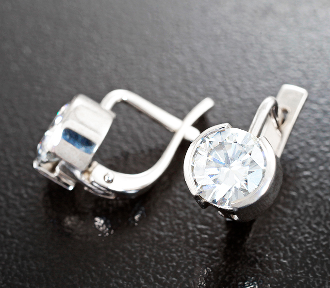 Серьги с бесцветными муассанитами 1,84 карата