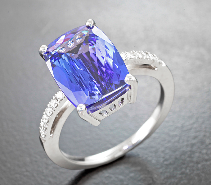 Кольцо с танзанитом 6,16 карата и бриллиантами