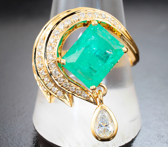 Комплект с уральскими изумрудами 10,25 карата, муассанитами и бриллиантами