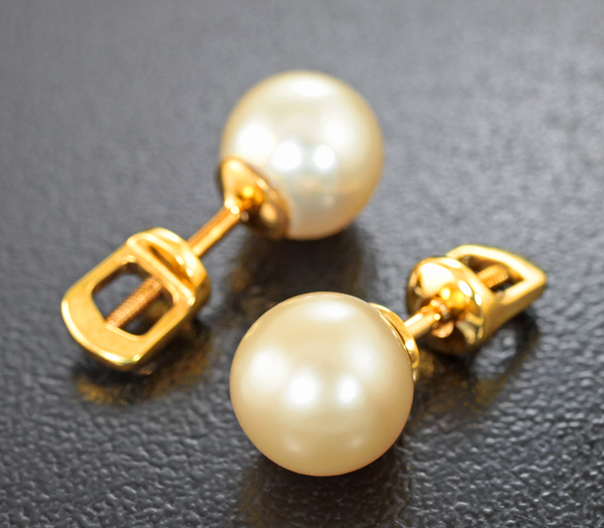 Вашему вниманию предлагаются пусеты из стерлингового серебра (925 проба) с золотистым морским жемчугом! Изделие позолочено. Диаметр пусет 8 мм. Вес пары 2,64 г. Ниже приводятся ювелирные характеристики вставок.