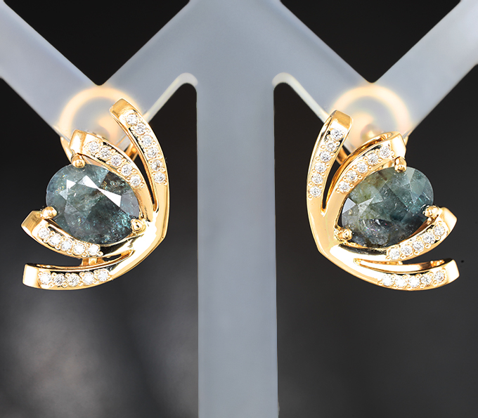Серьги с уральскими александритами 5,34 карата и бриллиантами