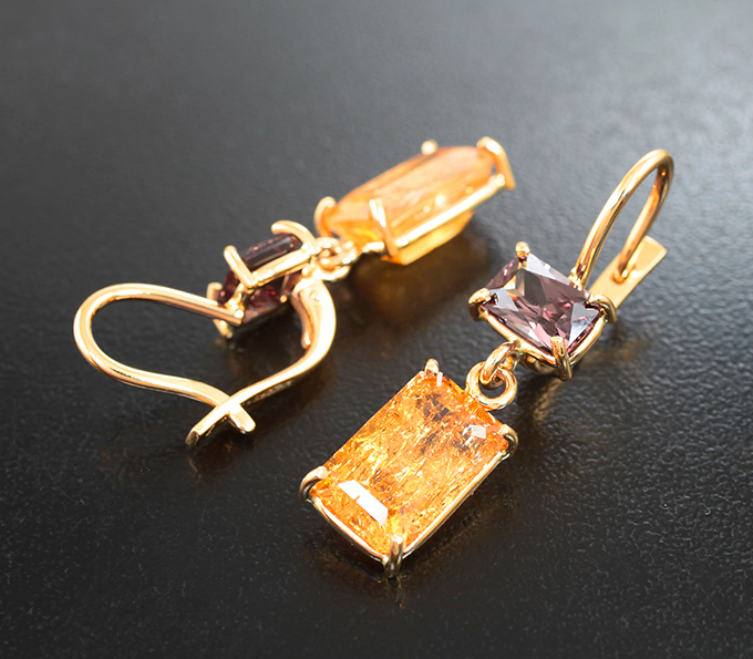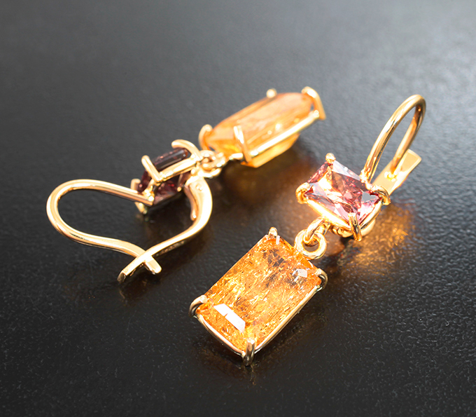 Серьги с империал топазами 8,92 карата и гранатами 2,73 карата