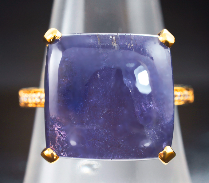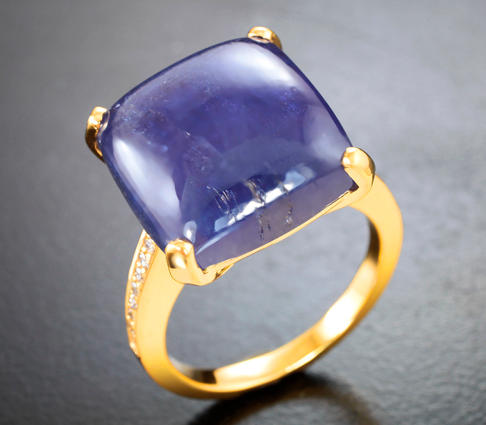 Колцьо с крупным танзанитом 16,48 карата и бриллиантами