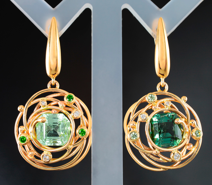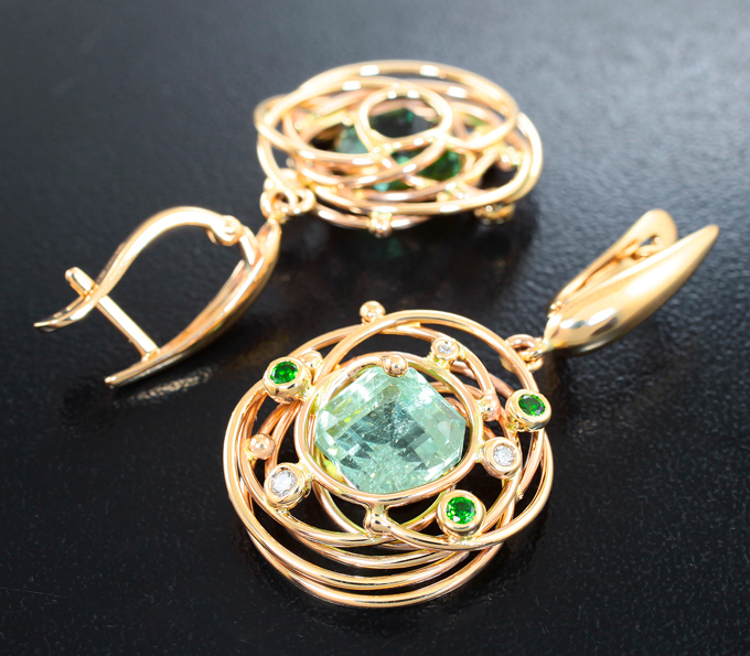Серьги с турмалинами 7,52 карата, сапфирами, диопсидами и бриллиантами