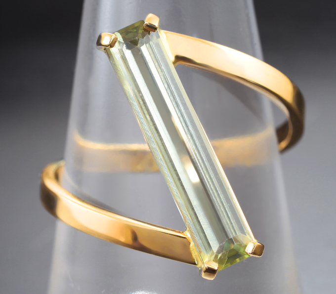 Вашему вниманию предлагается кольцо из желтого золота 585 пробы c чистейшим диаспором! Площадка 19 х 5 мм, высота 4 мм. Вес изделия 3,07 г. Размер 18. Ниже приводятся ювелирные характеристики вставки.