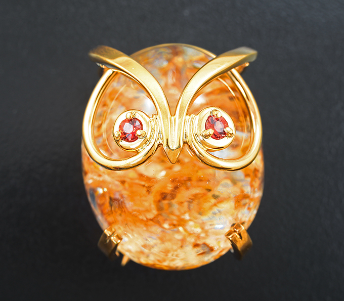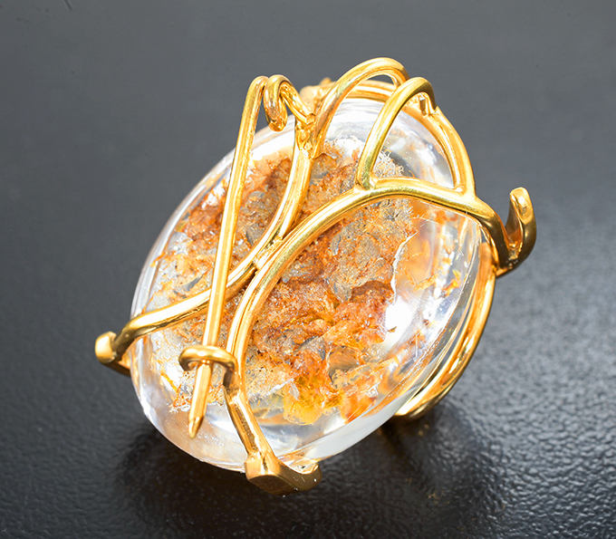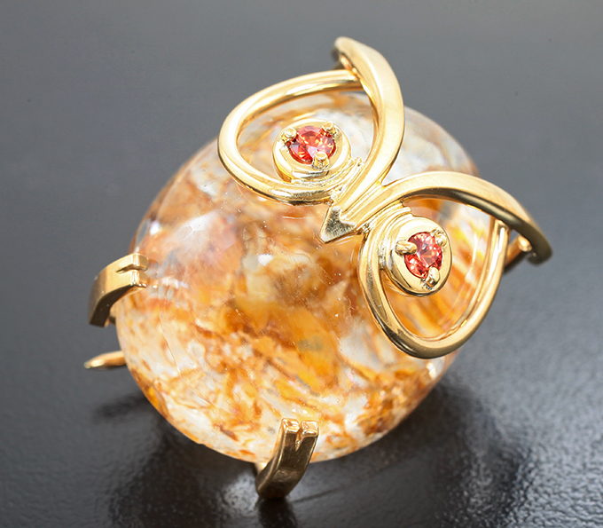 Брошь/кулон с крупным садовым кварцем 71,99 карата и оранжевыми сапфирами