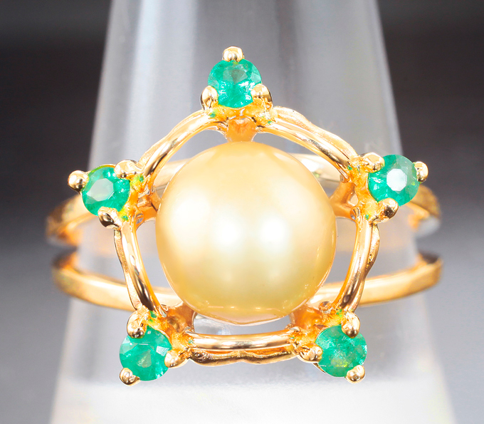 Вашему вниманию предлагается комплект (кольцо + серьги) из желтого золота 585 пробы с золотистым морским жемчугом 14,76 карата и уральскими изумрудами! Диаметр вставок 2,5 мм и 8 мм. Вес комплекта 13,01 г.