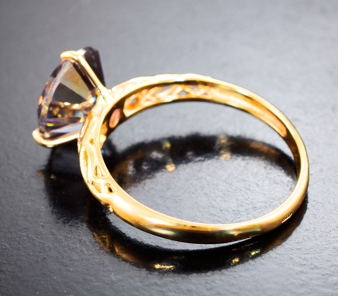 Вашему вниманию предлагается кольцо из желтого золота 585 пробы c пурпурно-розовым муассанитом высокой чистоты! Площадка 11 х 10 мм, высота 7 мм. Вес изделия 2,85 г. Размер 18,5. Ниже приводятся ювелирные характеристики.