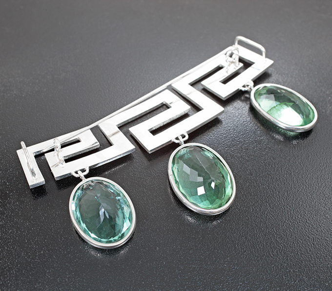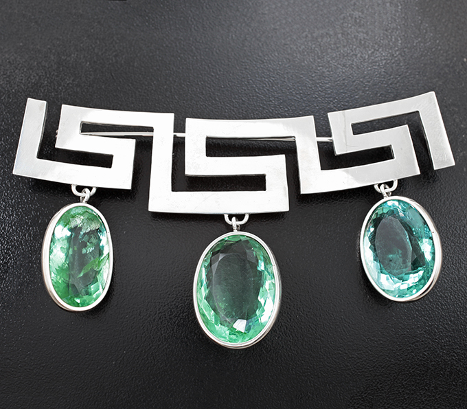 Вашему вниманию предлагается подвеска-брошь из стерлингового серебра (925 проба) с крупными неоново-зелеными флюоритами! Размеры изделия 100 х 52 мм. Вес изделия 45,6 г. Ниже приводятся ювелирные характеристики вставки.