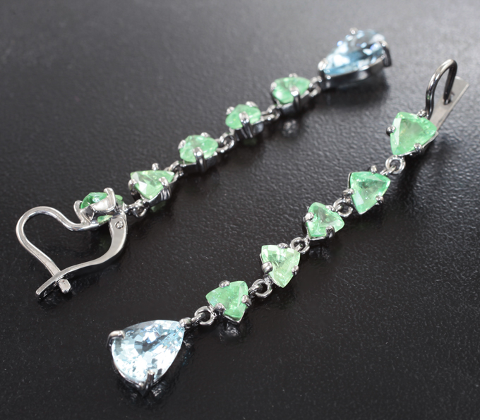 Серьги с цаворитами 5,9 карата и аквамаринами 3,69 карата